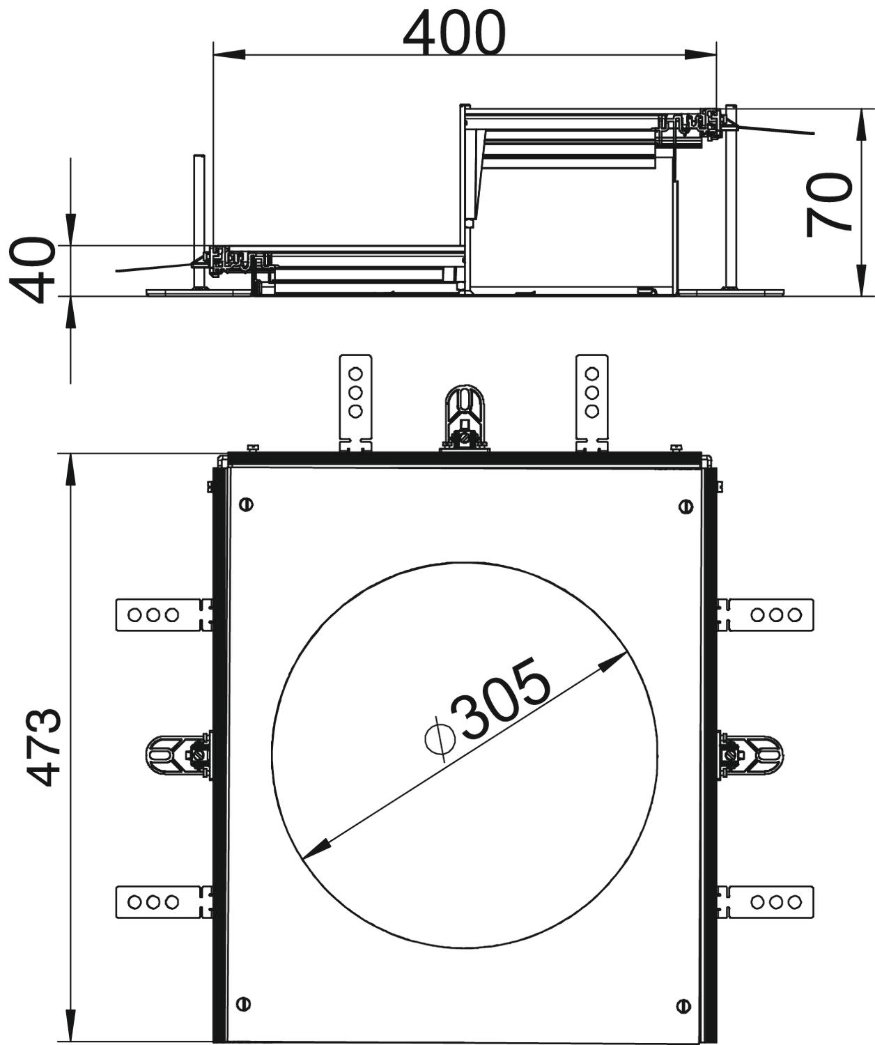 Montāžas atveres izmērs piemērots apaļas iebūvējamās vienības ar nominālo izmēru R9/55 iebūvēšanai.