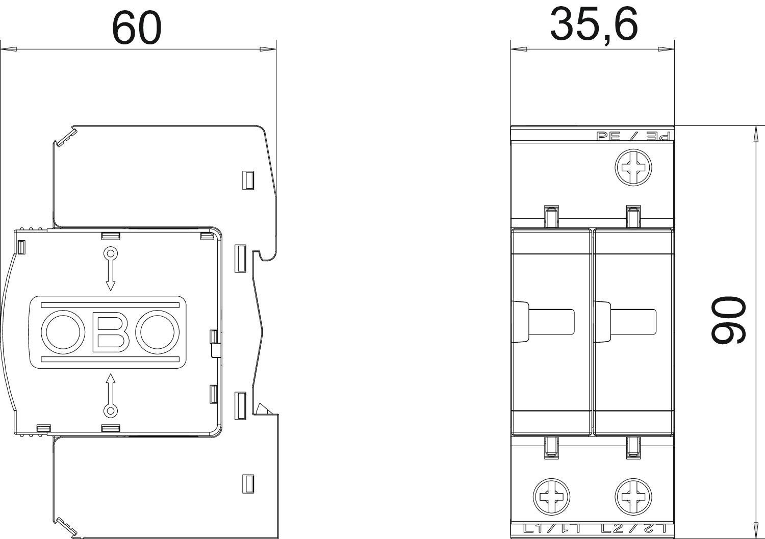 • Novadīšanas spēja līdz 40 kA (8/20) katram polam