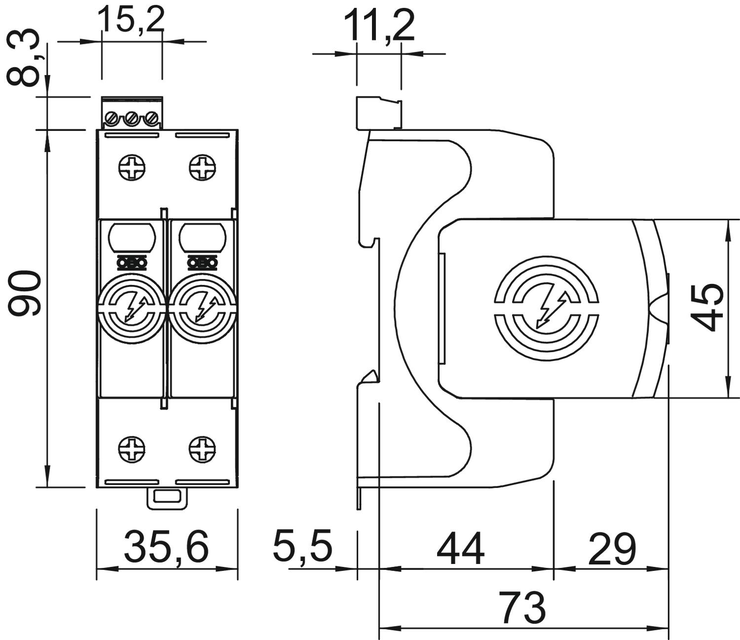 • novadīšanas spēja līdz 40 kA (8/20) katram polam, izmantojot efektīvus varistorus