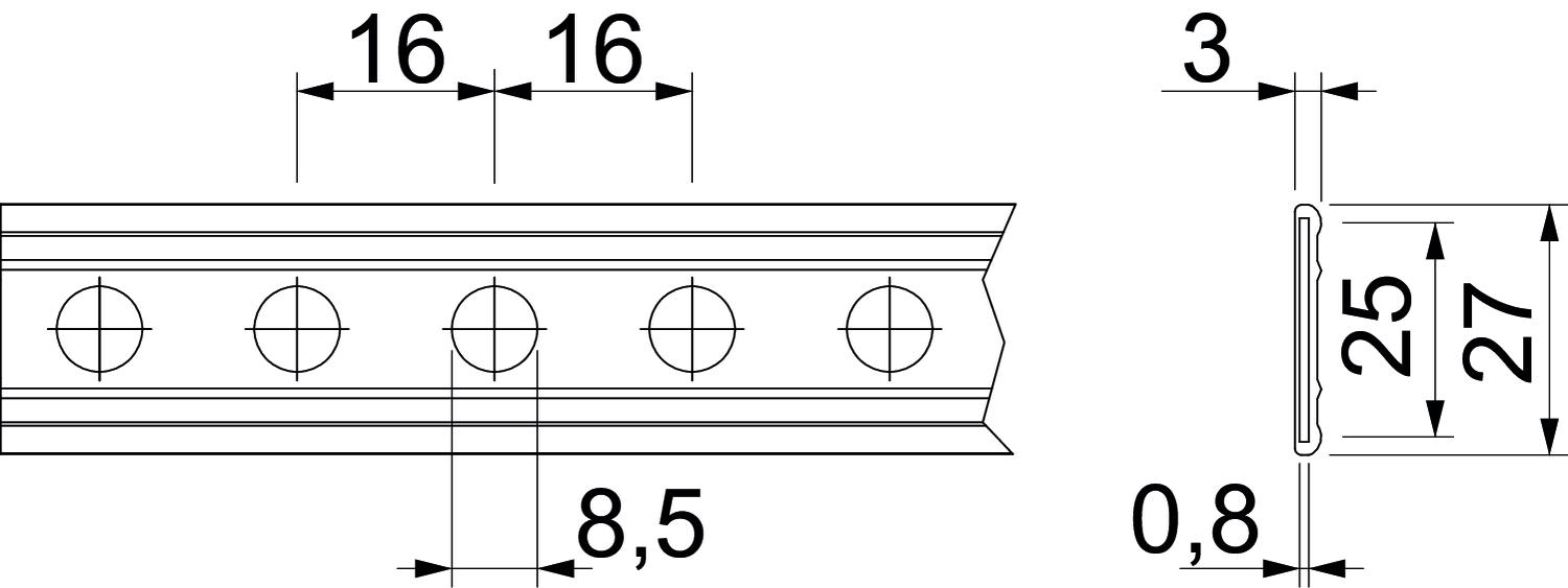 Cauruma diametrs 8,5 mm Izmēri 27 x 3 Izmērs t1 (mm) 3 Izmērs 27x2mm Izmērs A 16 mm Izmērs b 25 mm Izmērs b1 27 mm Izmērs d 8,5 mm Izmērs t 0,8 mm Izpildījums perforēts Krāsa melns Lielums III Materiāls Tērauds Nesatur halogēnus jā Perforācija apaļš Turētājā jā uz rulli 10 Virsma cinkots / ar plastmasas pārklājumu - Visi tipi