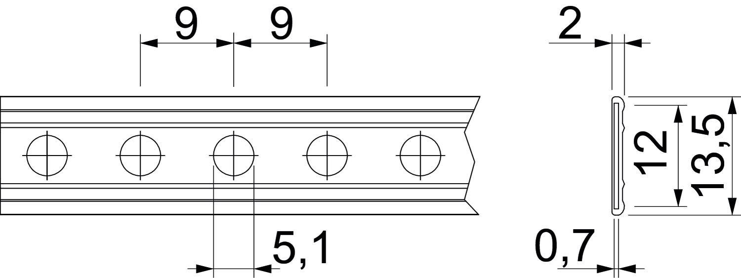 Cauruma diametrs 5,1 mm Izmēri 13,5 x 2 Izmērs t1 (mm) 2 Izmērs 13,5x2mm Izmērs A 9 mm Izmērs b 12 mm Izmērs b1 13,5 mm Izmērs d 5,1 mm Izmērs t 0,7 mm Izpildījums perforēts Krāsa melns Lielums I Materiāls Tērauds Nesatur halogēnus jā Perforācija apaļš Turētājā jā uz rulli 10 Virsma cinkots / ar plastmasas pārklājumu - Visi tipi