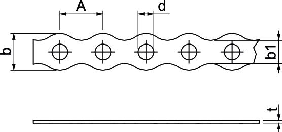 Ar perforāciju jā Cauruma diametrs 5,1 mm Izmēri 12 x 0,8 Izmērs 12x0,8mm Izmērs A 14 mm Izmērs b 12 mm Izmērs b1 7,5 mm Izmērs d 5,1 mm Izmērs t 0,8 mm Izpildījums perforēts Lentes veids viļņots Lielums I Materiāls Tērauds Perforācija apaļš Turētājā jā uz rulli 10 Virsma cinkots - Visi tipi