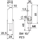 Ar metāla padziļinājumu jā Ar plastmasas padziļinājumu nē Ar prettvertni nē Ārējā izmēra garums 28 mm Augstums 81 mm caurules diametram maks. 16 mm caurules diametram min. 12 mm CO2 pēdas nospiedums (GWP) no šūpuļa līdz vārtiem 0,1388 kg CO2e / 1 Gabals Funkciju nodrošināšana jā Garums 22,5 mm griezuma diametrs 10 mm Izmērs 12-16mm Izmērs A 22,5 mm Izmērs B 20 mm Izmērs C 28 mm Izmērs G (mm) M6 Izmērs H 81 mm Izmērs L 46 mm Izmērs t 1,5 mm Kabeļu/ cauruļu skaits 3 Loksnes biezums 1,5 mm Maks. Pievilkšanas griezes moments 3 Nm Materiāls Tērauds Montāžas veids Profila sliede Nesatur halogēnus jā Papildu materiāls Tērauds Papildu virsma karsti cinkota Platums 20 mm sliedēm ar griezuma diametru (ar intervālu) maks. 17 mm sliedēm ar griezuma diametru (ar intervālu) min. 16 mm Spriegošanas diapazons D maks. 16 mm Spriegošanas diapazons D min. 12 mm Vannas materiāls Tērauds Virsma karsti cinkots Vītne M8 - Visi tipi