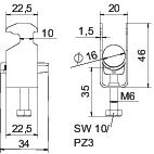 Produkta aprakstsPiekarapskava ar āmurveida kāju, plastmasas spiediena padziļinājums no polipropilēna. 1 atsevišķa kabeļa vertikālai un horizontālai montāžai pie C veida profila sliedes. Griezuma diametram 16–17 mm. Ar viengājiena skrūvi pie spiediena padziļinājuma, universāla sešstūru skrūves galviņa SW10, ar rievu un krustiņu. Piemērota montāžai telpās un ārpus telpām. Ieteicams izmantot pretpadziļinājumu.