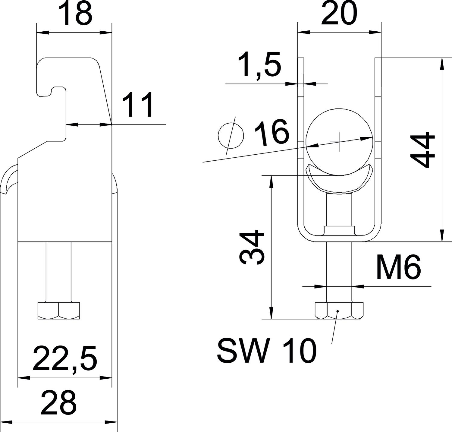 Produkta aprakstsPiekarapskava ar U veida kāju, metāla spiediena padziļinājums ar noapaļotām malām kabeļu aizsardzībai. 1 atsevišķa kabeļa vertikālai un horizontālai montāžai pie C veida profila sliedes. Griezuma diametram 18-22 mm. Ar viengājiena skrūvi pie spiediena padziļinājuma, universāla sešstūru skrūves galviņa SW10, ar rievu un krustiņu. Piemērota montāžai telpās un ārpus telpām. Ieteicams izmantot pretpadziļinājumu.