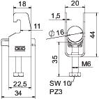 Produkta aprakstsPiekarapskava ar U veida kāju, plastmasas spiediena padziļinājums no polipropilēna. 1 atsevišķa kabeļa vertikālai un horizontālai montāžai pie C veida profila sliedes. Griezuma diametram 18-22 mm. Ar viengājiena skrūvi pie spiediena padziļinājuma, universāla sešstūru skrūves galviņa SW10, ar rievu un krustiņu. Piemērota montāžai telpās un ārpus telpām. Ieteicams izmantot pretpadziļinājumu.