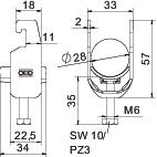 Produkta aprakstsPiekarapskava ar U veida kāju, plastmasas spiediena padziļinājums no polipropilēna. 1 atsevišķa kabeļa vertikālai un horizontālai montāžai pie C veida profila sliedes. Griezuma diametram 18-22 mm. Ar viengājiena skrūvi pie spiediena padziļinājuma, universāla sešstūru skrūves galviņa SW10, ar rievu un krustiņu. Piemērota montāžai telpās un ārpus telpām. Ieteicams izmantot pretpadziļinājumu.
