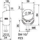 Produkta aprakstsPiekarapskava ar U veida kāju, plastmasas spiediena padziļinājums no polipropilēna. 1 atsevišķa kabeļa vertikālai un horizontālai montāžai pie C veida profila sliedes. Griezuma diametram 18-22 mm. Ar viengājiena skrūvi pie spiediena padziļinājuma, universāla sešstūru skrūves galviņa SW10, ar rievu un krustiņu. Piemērota montāžai telpās un ārpus telpām. Ieteicams izmantot pretpadziļinājumu.