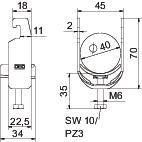 Produkta aprakstsPiekarapskava ar U veida kāju, plastmasas spiediena padziļinājums no polipropilēna. 1 atsevišķa kabeļa vertikālai un horizontālai montāžai pie C veida profila sliedes. Griezuma diametram 18-22 mm. Ar viengājiena skrūvi pie spiediena padziļinājuma, universāla sešstūru skrūves galviņa SW10, ar rievu un krustiņu. Piemērota montāžai telpās un ārpus telpām. Ieteicams izmantot pretpadziļinājumu.