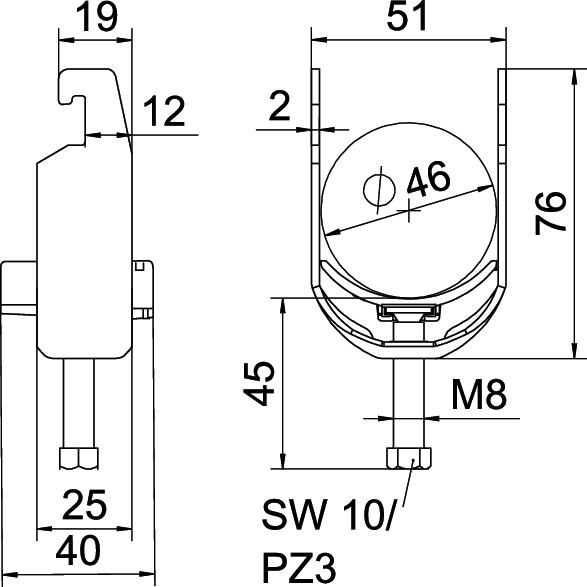 Ar plastmasas padziļinājumu jā Ar prettvertni nē Ārējā izmēra garums 40 mm Augstums 76 mm caurules diametram maks. 46 mm caurules diametram min. 40 mm CO2 pēdas nospiedums (GWP) no šūpuļa līdz vārtiem 0,2026 kg CO2e / 1 Gabals Garums 25 mm griezuma diametrs 10 mm Izmērs 40-46mm Izmērs A 25 mm Izmērs B 51 mm Izmērs C 40 mm Izmērs G (mm) M8 Izmērs H 76 mm Izmērs L 45 mm Izmērs t 2 mm Kabeļu/ cauruļu skaits 1 Loksnes biezums 2 mm Maks. Pievilkšanas griezes moments 5 Nm Materiāls Tērauds Montāžas veids Profila sliede Nesatur halogēnus jā Papildu materiāls Tērauds Papildu virsma karsti cinkota Platums 51 mm sliedēm ar griezuma diametru (ar intervālu) maks. 22 mm sliedēm ar griezuma diametru (ar intervālu) min. 18 mm Spriegošanas diapazons D maks. 46 mm Spriegošanas diapazons D min. 40 mm Vannas materiāla kvalitāte Polipropilēns Vannas materiāls Plastmasa Virsma karsti cinkots Vītne M8 - Visi tipi
