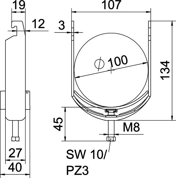Ar plastmasas padziļinājumu jā Ar prettvertni nē Ārējā izmēra garums 40 mm Augstums 134 mm caurules diametram maks. 100 mm caurules diametram min. 90 mm CO2 pēdas nospiedums (GWP) no šūpuļa līdz vārtiem 0,6475 kg CO2e / 1 Gabals Garums 27 mm griezuma diametrs 10 mm Izmērs 90-100mm Izmērs A 27 mm Izmērs B 107 mm Izmērs C 40 mm Izmērs G (mm) M8 Izmērs H 134 mm Izmērs L 45 mm Izmērs t 3 mm Kabeļu/ cauruļu skaits 1 Loksnes biezums 3 mm Maks. Pievilkšanas griezes moments 5 Nm Materiāls Tērauds Montāžas veids Profila sliede Nesatur halogēnus jā Papildu materiāls Tērauds Papildu virsma karsti cinkota Platums 107 mm sliedēm ar griezuma diametru (ar intervālu) maks. 22 mm sliedēm ar griezuma diametru (ar intervālu) min. 18 mm Spriegošanas diapazons D maks. 100 mm Spriegošanas diapazons D min. 90 mm Vannas materiāla kvalitāte Polipropilēns Vannas materiāls Plastmasa Virsma karsti cinkots Vītne M8 - Visi tipi