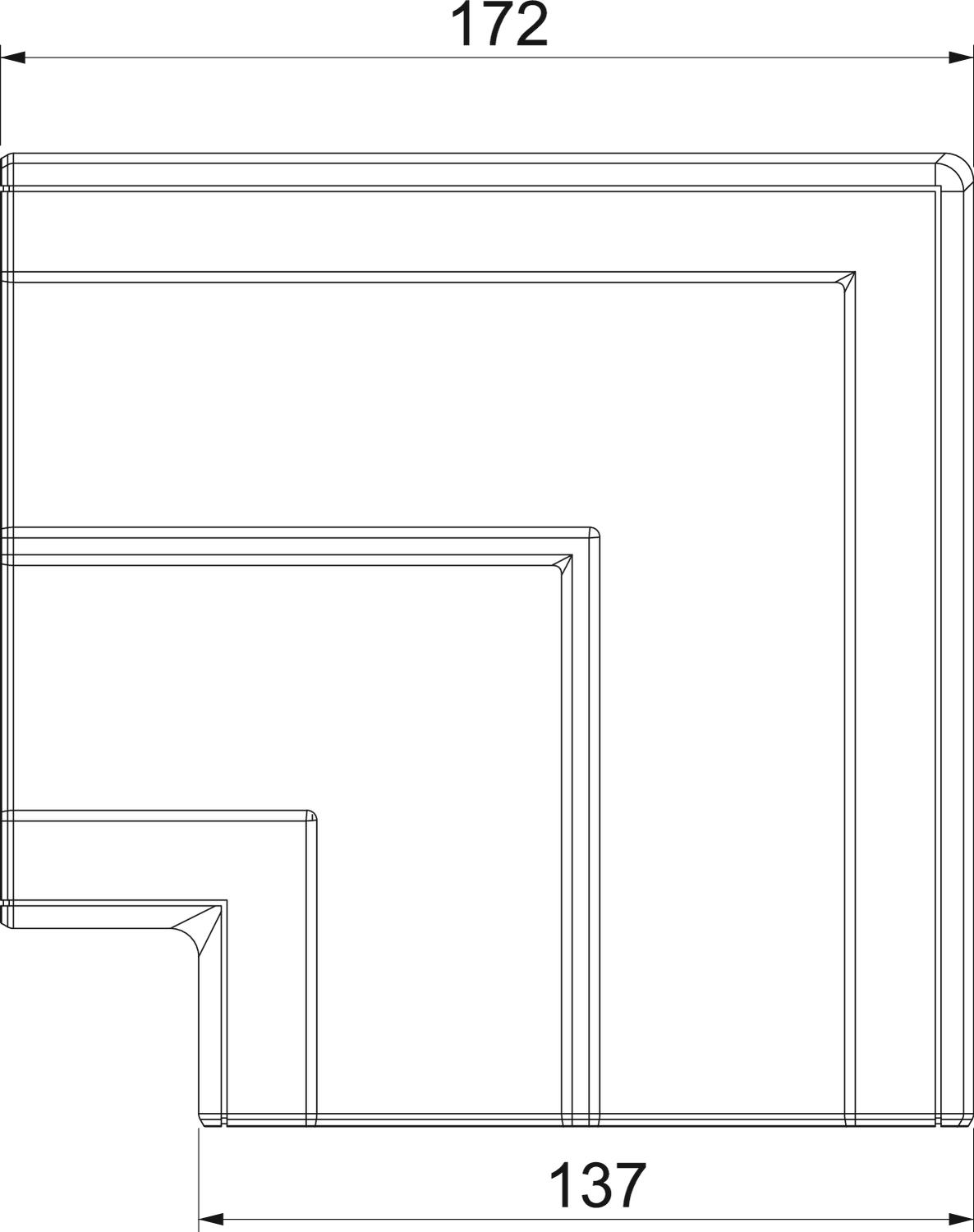 Aizsardzības pakāpes IK kods IK08 Aizsardzības veids IP40 Aizsargplēve nē Antibakteriāla apstrāde nē Augšējo daļu montāžas veids vispārējs Augstums 55,5 mm CO2 pēdas nospiedums (GWP) no šūpuļa līdz vārtiem 0,8437 kg CO2e / 1 Gabals Garums 172 mm Grīdā izveidotas atveres montāžas vajadzībām nē Izmantošanas temperatūras diapazons maks. 60 °C Izmantošanas temperatūras diapazons min. -15 °C Izmērs 172x172x56 Izpildījums Apvalka detaļa Kabeļu skava nē Kanāla savienotājs nē Krāsa dzidri balts; RAL 9010 Leņķa diapazons maks. 90 mm Leņķa diapazons min. 90 mm Materiāls Polikarbonāts/Acrylnitril-Butadien-Styrol Nesatur halogēnus jā paredzēts kanāla augstumam 53 mm paredzēts kanāla platumam 130 mm Platums 137 mm simetrisks jā Vāku skaits 1 Virziena maiņa vertikāli augšupvērsts/lejupvērsts - Visi tipi
