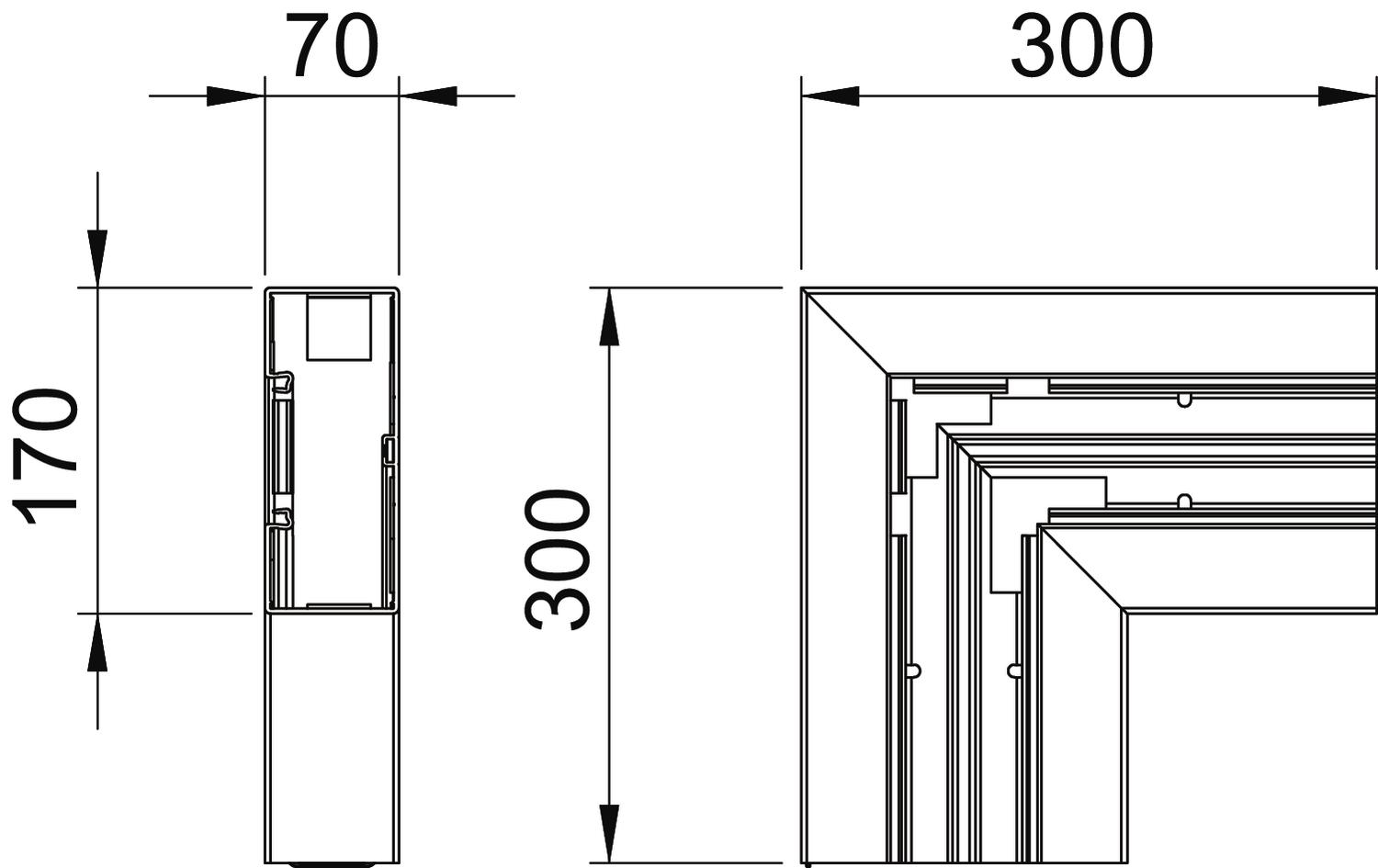 Aizsardzības pakāpes IK kods IK08 Aizsardzības veids IP30 Aizsargplēve jā Antibakteriāla apstrāde nē Augšējās daļas platums 76,5 mm Augšējo daļu montāžas veids iekšpusē Augstums 70 mm CO2 pēdas nospiedums (GWP) no šūpuļa līdz vārtiem 3,1911 kg CO2e / 1 Gabals Garums 300 mm Grīdā izveidotas atveres montāžas vajadzībām jā Izmantošanas temperatūras diapazons maks. 60 °C Izmantošanas temperatūras diapazons min. -15 °C Izmērs 70x170mm Izpildījums Apakšējā daļa Kabeļu skava nē Kanāla savienotājs nē Krāsa dzidri balts; RAL 9010 Leņķa diapazons maks. 90 mm Leņķa diapazons min. 90 mm Materiāls Polivinilhlorīds Nesatur halogēnus nē paredzēts kanāla augstumam 70 mm paredzēts kanāla platumam 170 mm Platums 170 mm simetrisks jā Vāku skaits 1 Virziena maiņa vertikāli augšupvērsts/lejupvērsts - Visi tipi