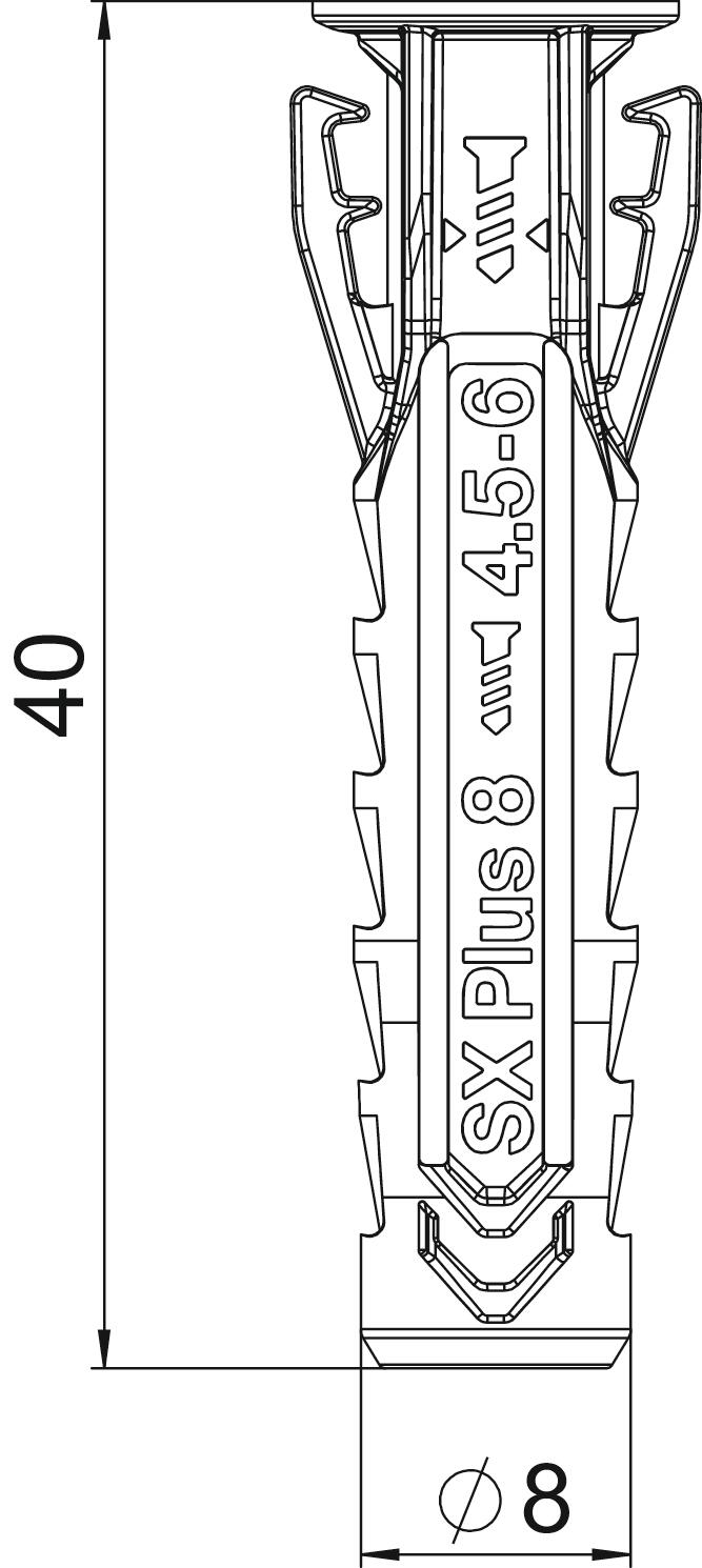 Ar skrūvēm nē Diametrs 8 mm Garums 40 mm Izmērs 8x40 Izmērs D 8 mm Izmērs L 40 mm Izpildījums Izplešanās dībelis Krāsa gaiši pelēks Materiāls Poliamīds Piemērots nostiprināšanai ar kabeļu saitēm nē Piemērots sešstūrgalvas kokskrūvei jā Piemērots skrūvei ar diametru maks. 6 mm Piemērots skrūvei ar diametru min. 4,5 mm Urbtā cauruma dziļums 50 mm - Visi tipi