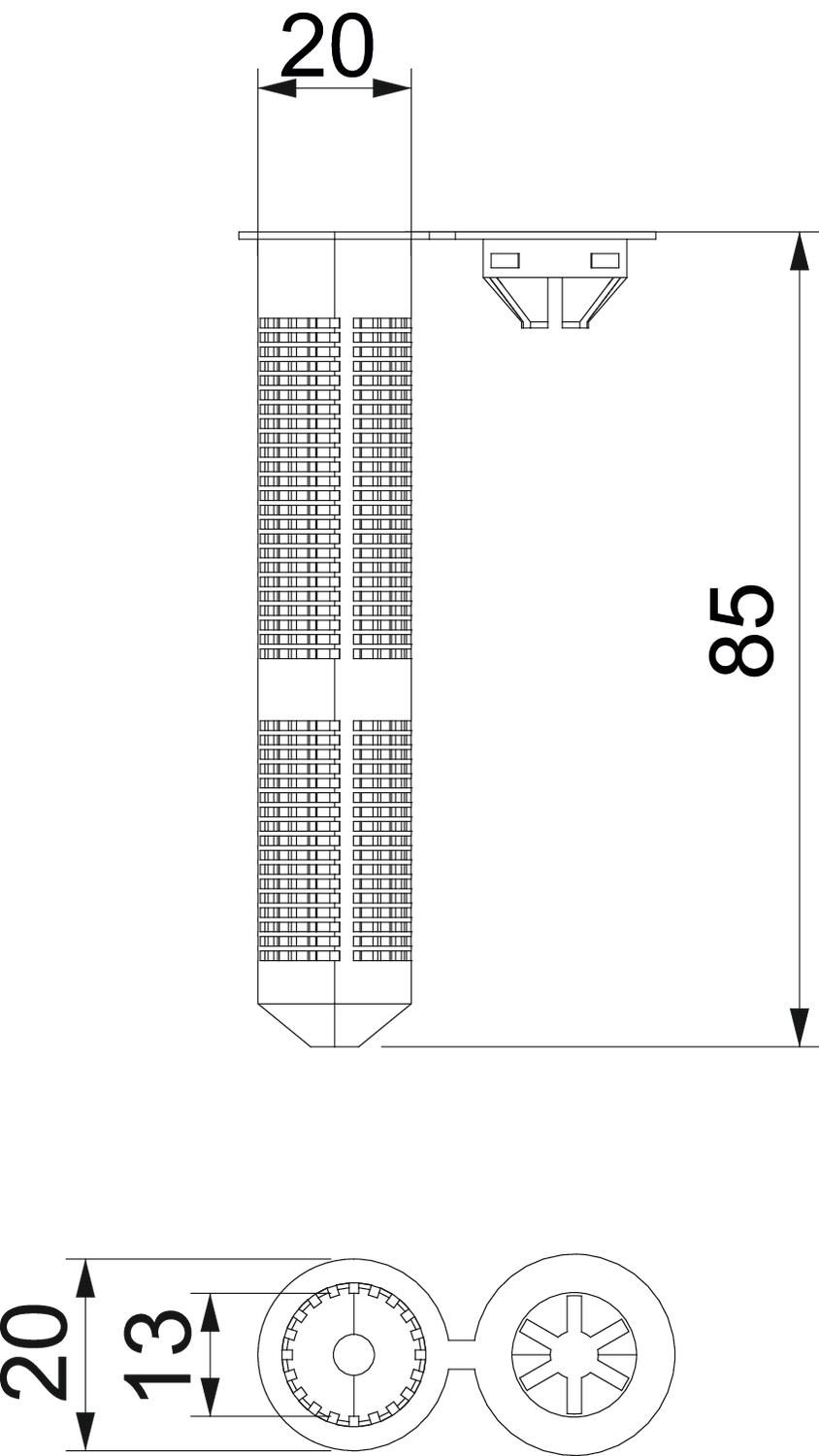 Ar atloku jā Garums 85 mm Izmērs d 20 mm Izmērs L 85 mm Izpildījums iespraužams Krāsa balts Materiāls Poliamīds Pašgriezoša nē - Visi tipi