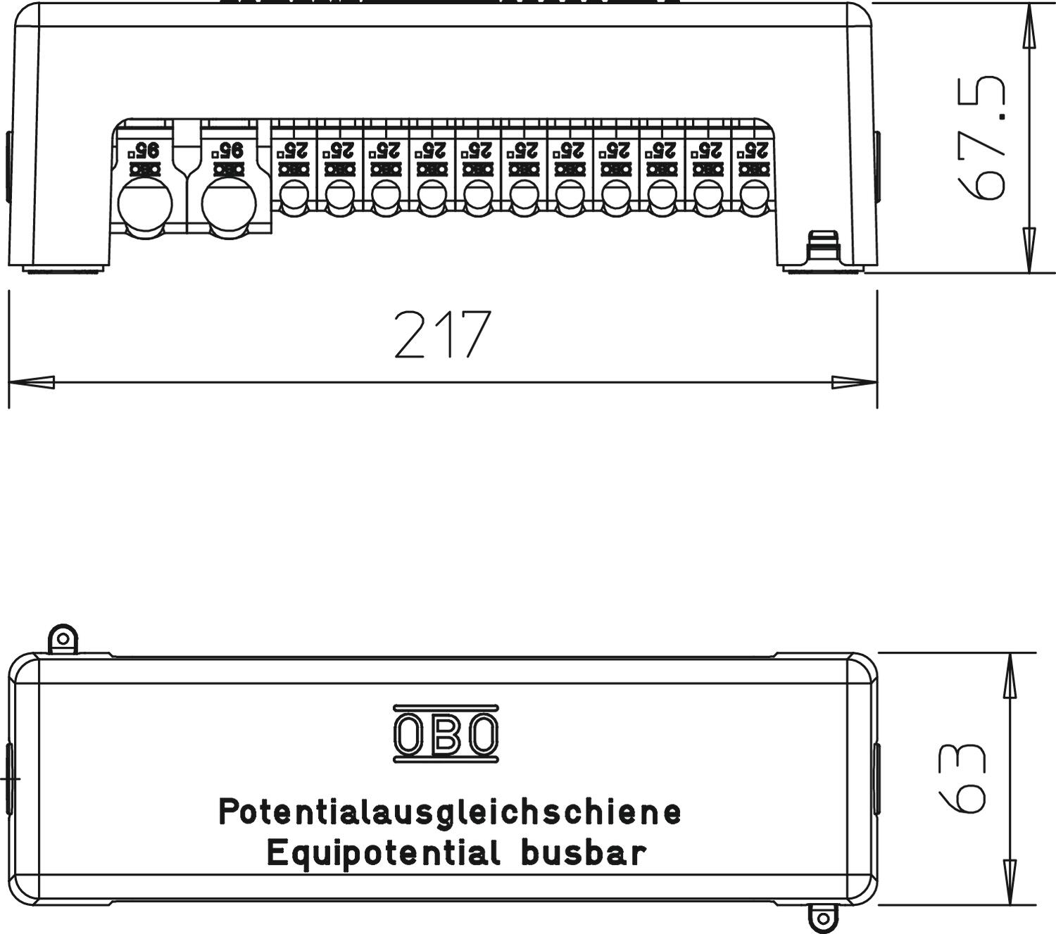 Produkta aprakstsPotenciālu izlīdzināšanas sliede potenciālu izlīdzināšanai atb. DIN VDE 0100-410/-540 un zibensaizsardzības potenciālu izlīdzināšanai atb. DIN VDE 0185-305