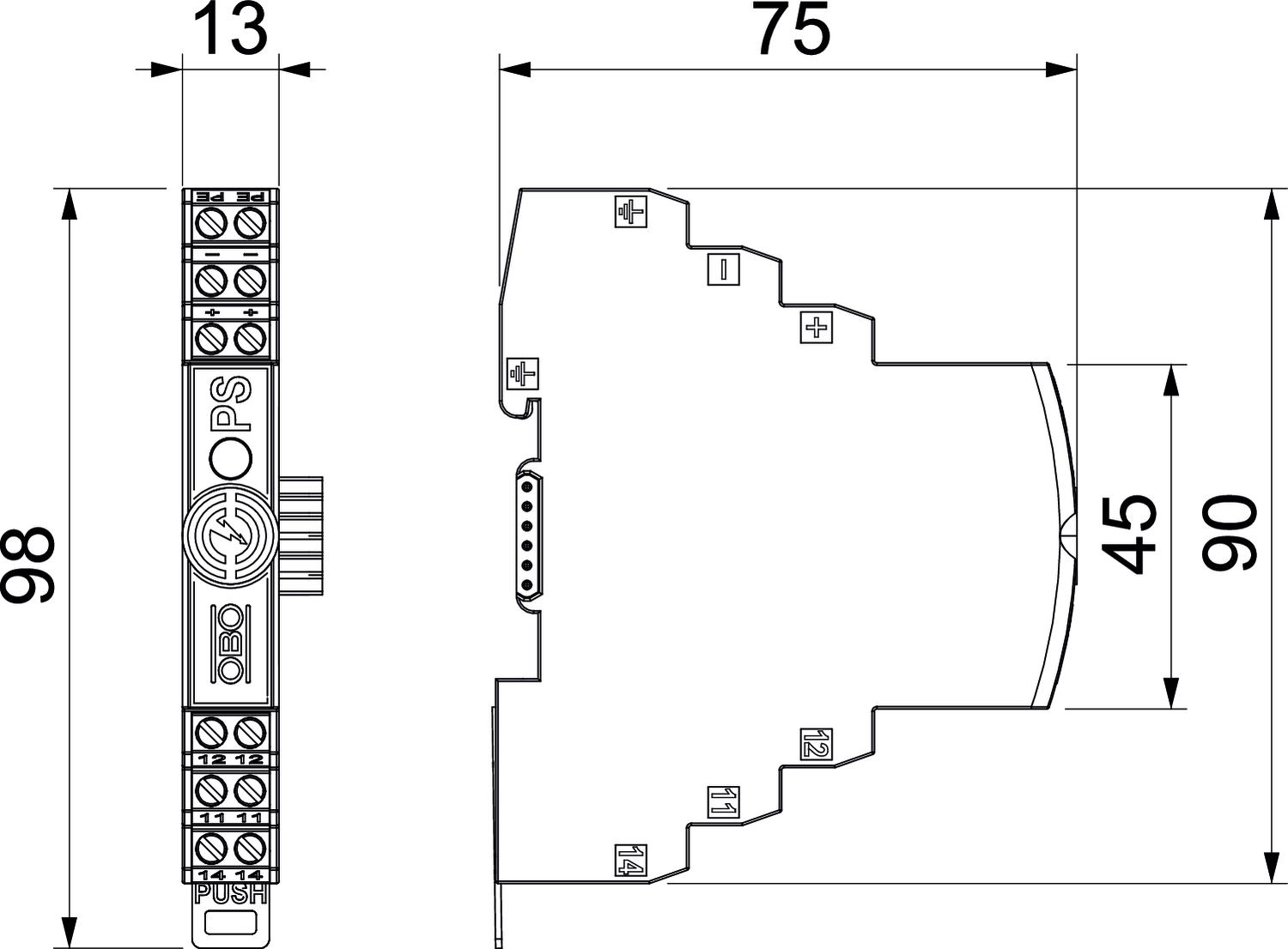 Aizsardzības veids IP20 Augstums 98 mm CO2 pēdas nospiedums (GWP) no šūpuļa līdz vārtiem 0,297 kg CO2e / 1 Gabals Ekrāna pieslēgums nē Garums 75 mm Ieejas / izejas montāža Skrūvējamas spailes Ierīces signalizācija optisks Izmantošanas temperatūras diapazons maks. 80 °C Izmantošanas temperatūras diapazons min. -40 °C Izmērs 5V Pieslēguma diametrs, elastīgs maks. 1,5 mm² Pieslēguma diametrs, elastīgs min. 0,14 mm² Pieslēguma diametrs, vairākdzīslu maks. 2,5 mm² Pieslēguma diametrs, vairākdzīslu min. 0,14 mm² Platums 13 mm Stacionārā pieslēguma šķērsgriezums maks. 2,5 mm² Stacionārā pieslēguma šķērsgriezums min. 0,14 mm² Tālvadības signālkontakts jā Zemējums ar: Pieslēguma vads - Visi tipi