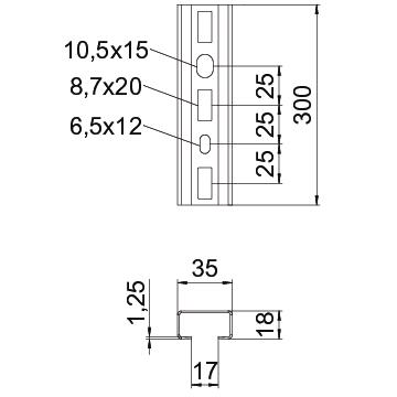 Ar perforāciju jā Ar zobiem nē Atdalāms nē Augstums 18 mm CO2 pēdas nospiedums (GWP) no šūpuļa līdz vārtiem 0,5703 kg CO2e / 1 Gabals Funkciju nodrošināšana jā Garums 300 mm griezuma diametrs 17 mm Izmērs 300x35x18 Izpildījums Vienkāršs profils Krāsa melns; RAL 9005 Materiāla biezums 1,25 mm Materiāls Tērauds Nerūsējošs tērauds, kodināts nē Perforējuma veids Perforēta aizmugure Platums 35 mm Profila forma C veida profils Statiskā vērtība ly 0,41 cm⁴ Statiskā vērtība lz 1,81 cm⁴ Statiskā vērtība Wy 0,41 cm³ Statiskā vērtība Wz 1,03 cm³ Urbto caurumu attālums vidū 25 mm Virsma PES135 – poliesters - Visi tipi