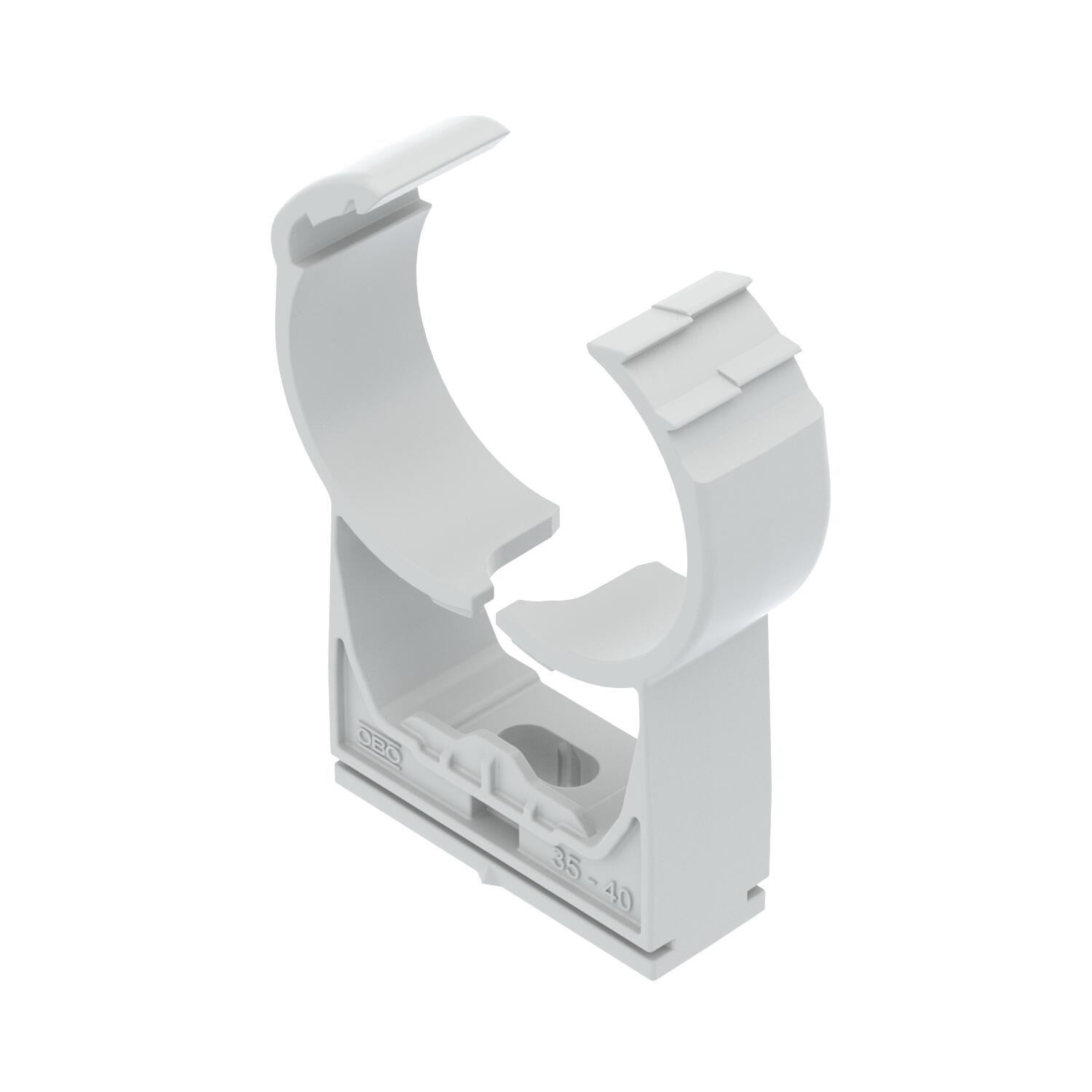 Produkta aprakstsHighly stressable clip for accepting plastic or metal electrical and sanitary pipes as well as the electrical installation pipe Quick pipe. Universal fastening options on walls, ceilings and steel constructions, both indoors and outdoors. Flexible clamping range of several millimetres. Toolless pipe mounting. Connectable to each other to Ø 32 mm, also with the OBO Quick or Multi Quick clip. For variable distances and clip quantity mountable on a profile rail.