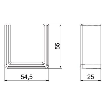 Augstums 55 mm Garums 25 mm Izmērs 25x50 Izpildījums Gala elements Krāsa grafītmelns; RAL 9011 Materiāls Polietilēns Piemērots profila formām U veida profils Platums 50 mm - Visi tipi