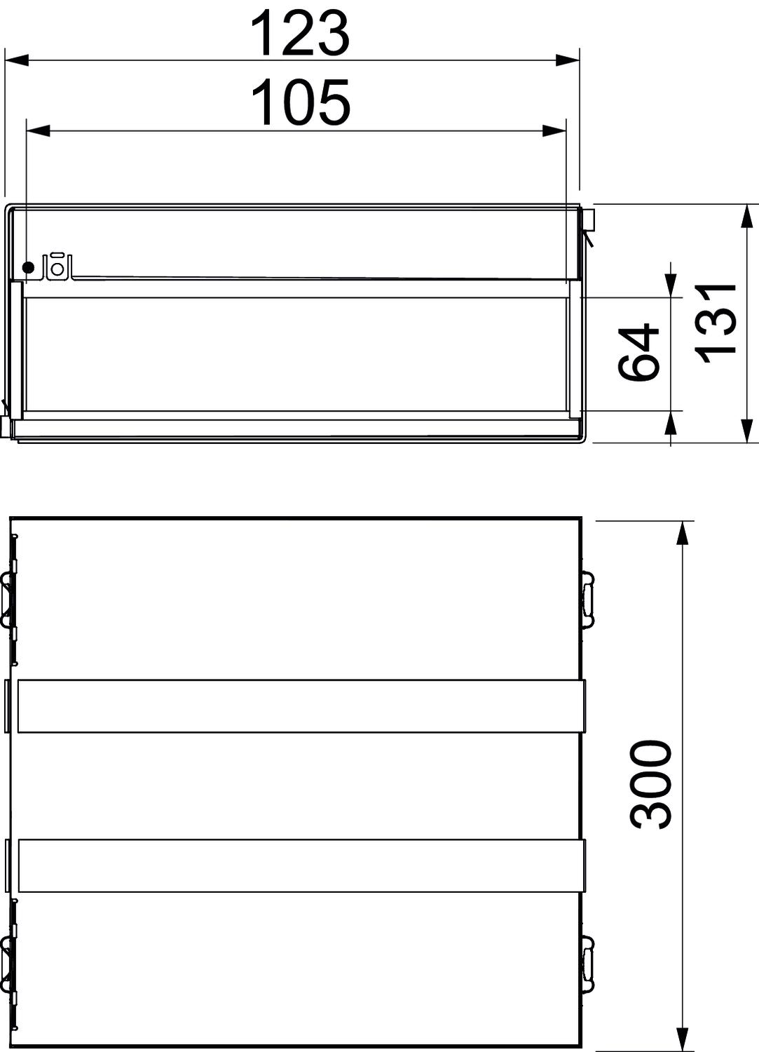 Augstums 131 mm Forma stūrains Garums 300 mm Iekšējais augstums 64 mm Iekšējais platums 105 mm Izmērs 300x123x130 Izmērs d 105 mm Izmērs D, min. 123 mm Krāsa tērauda Materiāls Nerūsējošais tērauds 1.4301 Nepieciešamie piederumi jā Platums 123 mm Ugunsdrošības instalācija Noblīvējuma kārba Virsma neizolēts, apstrādāts - Visi tipi