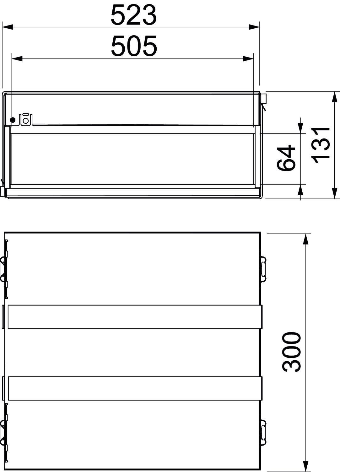 Augstums 131 mm Forma stūrains Garums 300 mm Iekšējais augstums 64 mm Iekšējais platums 505 mm Izmērs 300x523x130 Izmērs d 505 mm Izmērs D, min. 523 mm Krāsa tērauda Materiāls Nerūsējošais tērauds 1.4301 Nepieciešamie piederumi jā Platums 523 mm Ugunsdrošības instalācija Noblīvējuma kārba Virsma neizolēts, apstrādāts - Visi tipi