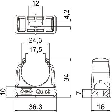 Produkta aprakstsVirsapmetuma apskava metrisko tērauda apšuvuma cauruļu, vieglu un smagu izolācijas cauruļu, kā arī elektroinstalācijas caurules Quick-Pipe ievietošanai. Universālas montāžas iespējas pie sienas un griestiem iekštelpās un aizsargājamā āra teritorijā. Ar pagarinātu caurumu sānu izlīdzināšanai, montējot ar koka skrūvi vai iedzeramu enkuru. Cauruļu montāža bez instrumentiem. Viena ar otru sarindojamas arī ar OBO Multi-Quick vai proQuick apskavu. Izmēru M16 - M32 var uzskrūvēt uz vītnes M6. Stiprinājuma attālums 50 – 60 cm, maks. izvilkšanas pretestības vērtības F apstākļos ar telpas temperatūru 20° C norādītas tabulā.