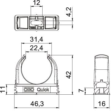 Produkta aprakstsVirsapmetuma apskava metrisko tērauda apšuvuma cauruļu, vieglu un smagu izolācijas cauruļu, kā arī elektroinstalācijas caurules Quick-Pipe ievietošanai. Universālas montāžas iespējas pie sienas un griestiem iekštelpās un aizsargājamā āra teritorijā. Ar pagarinātu caurumu sānu izlīdzināšanai, montējot ar koka skrūvi vai iedzeramu enkuru. Cauruļu montāža bez instrumentiem. Viena ar otru sarindojamas arī ar OBO Multi-Quick vai proQuick apskavu. Izmēru M16 - M32 var uzskrūvēt uz vītnes M6. Stiprinājuma attālums 50 – 60 cm, maks. izvilkšanas pretestības vērtības F apstākļos ar telpas temperatūru 20° C norādītas tabulā.