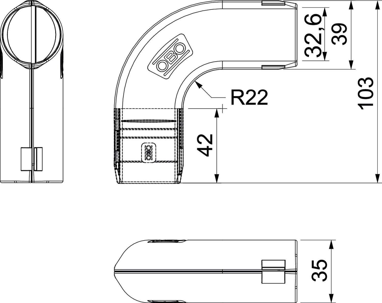 Produkta aprakstsFasondetaļa elektroinstalācijas caurule no plastmasas 90° līkuma izveidošanai. Piemērota OBO Quick Pipe caurulei vai gofrētai caurulei. Aizvēršana un atvēršana bez instrumentiem. Izmantojams temperatūras diapazonā no - 25° līdz + 60° C.