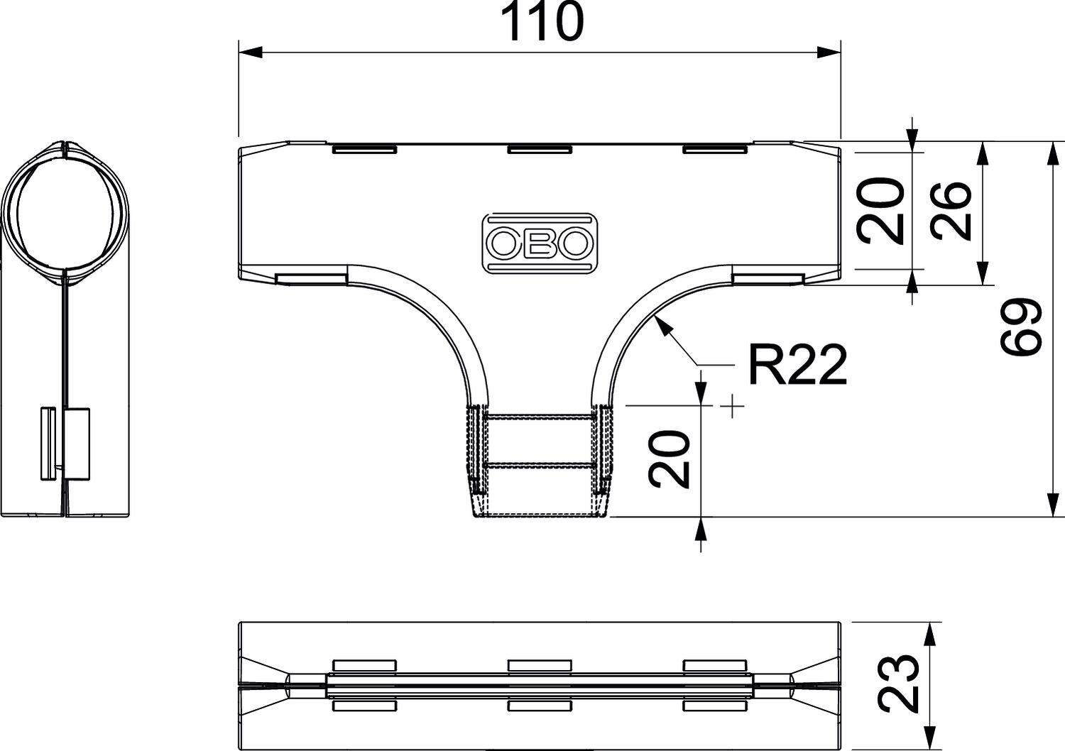 Produkta aprakstsFasondetaļa elektroinstalācijas caurule no plastmasas T veida atzarojuma izveidošanai. Piemērota OBO Quick Pipe caurulei vai gofrētai caurulei. Aizvēršana un atvēršana bez instrumentiem. Izmantojams temperatūras diapazonā no - 25° līdz + 60° C.