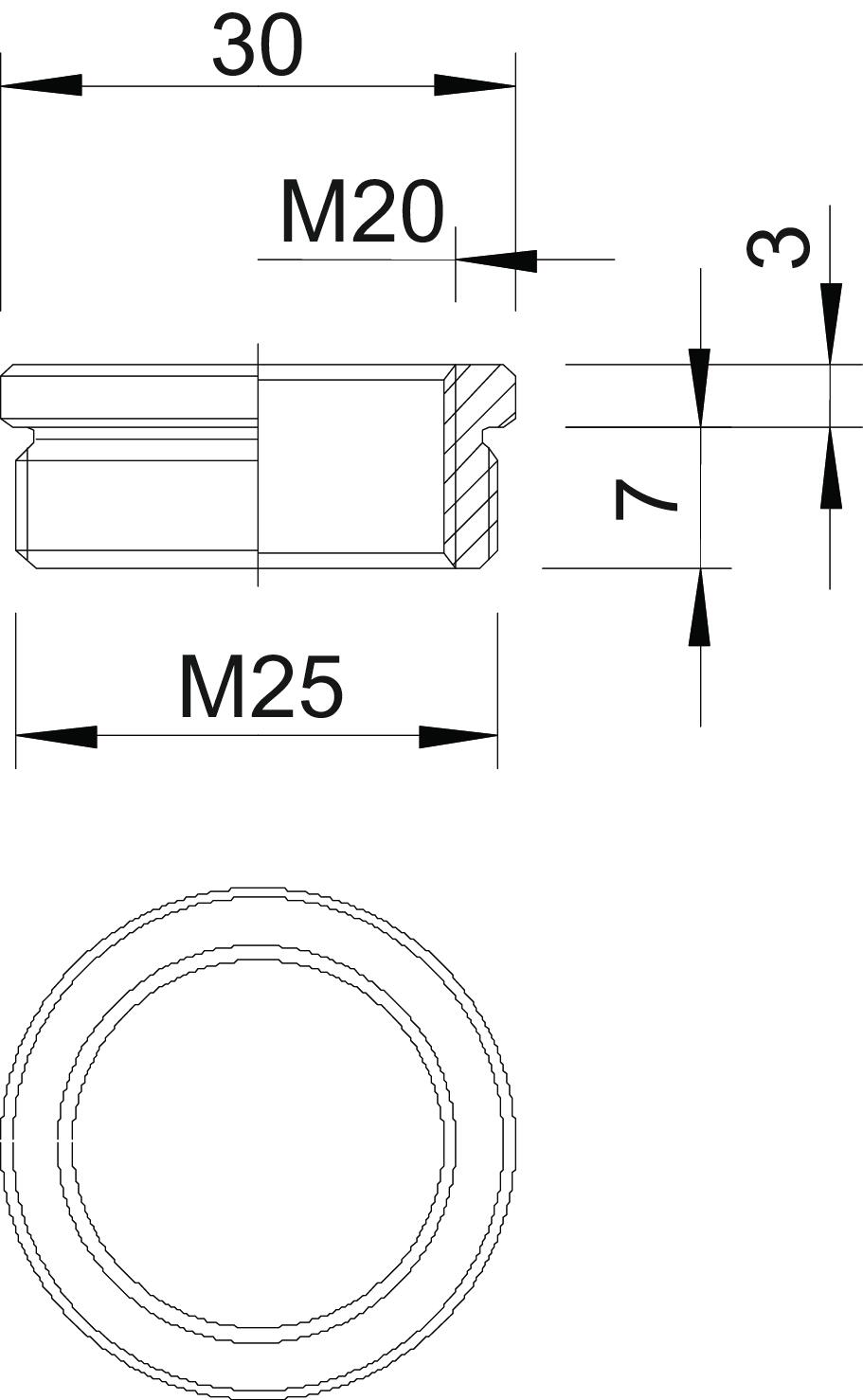 Produkta aprakstsDiametru samazinošs elements (daļa H) līdzīgi DIN 46320, ar metrisku vītni atb. DIN EN 60423 vai ISO 68.