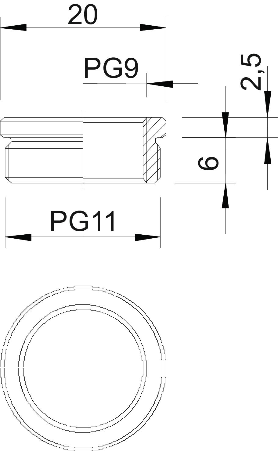 Produkta aprakstsDiametru samazinošs elements (daļa H) atb. DIN 46320, ar PG vītni atb. DIN 40430, pārejai no atveres ar PG vītni uz mazāka diametra kabeļu skrūvsavienojumu.