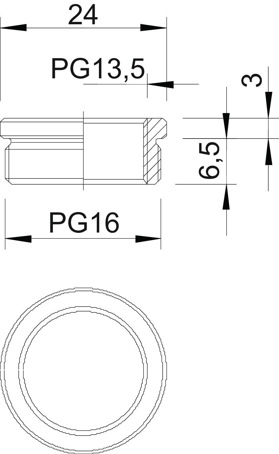 Produkta aprakstsDiametru samazinošs elements (daļa H) atb. DIN 46320, ar PG vītni atb. DIN 40430, pārejai no atveres ar PG vītni uz mazāka diametra kabeļu skrūvsavienojumu.