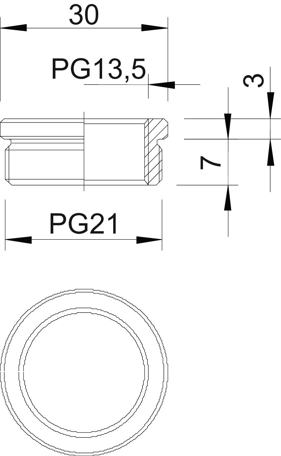 Produkta aprakstsDiametru samazinošs elements (daļa H) atb. DIN 46320, ar PG vītni atb. DIN 40430, pārejai no atveres ar PG vītni uz mazāka diametra kabeļu skrūvsavienojumu.