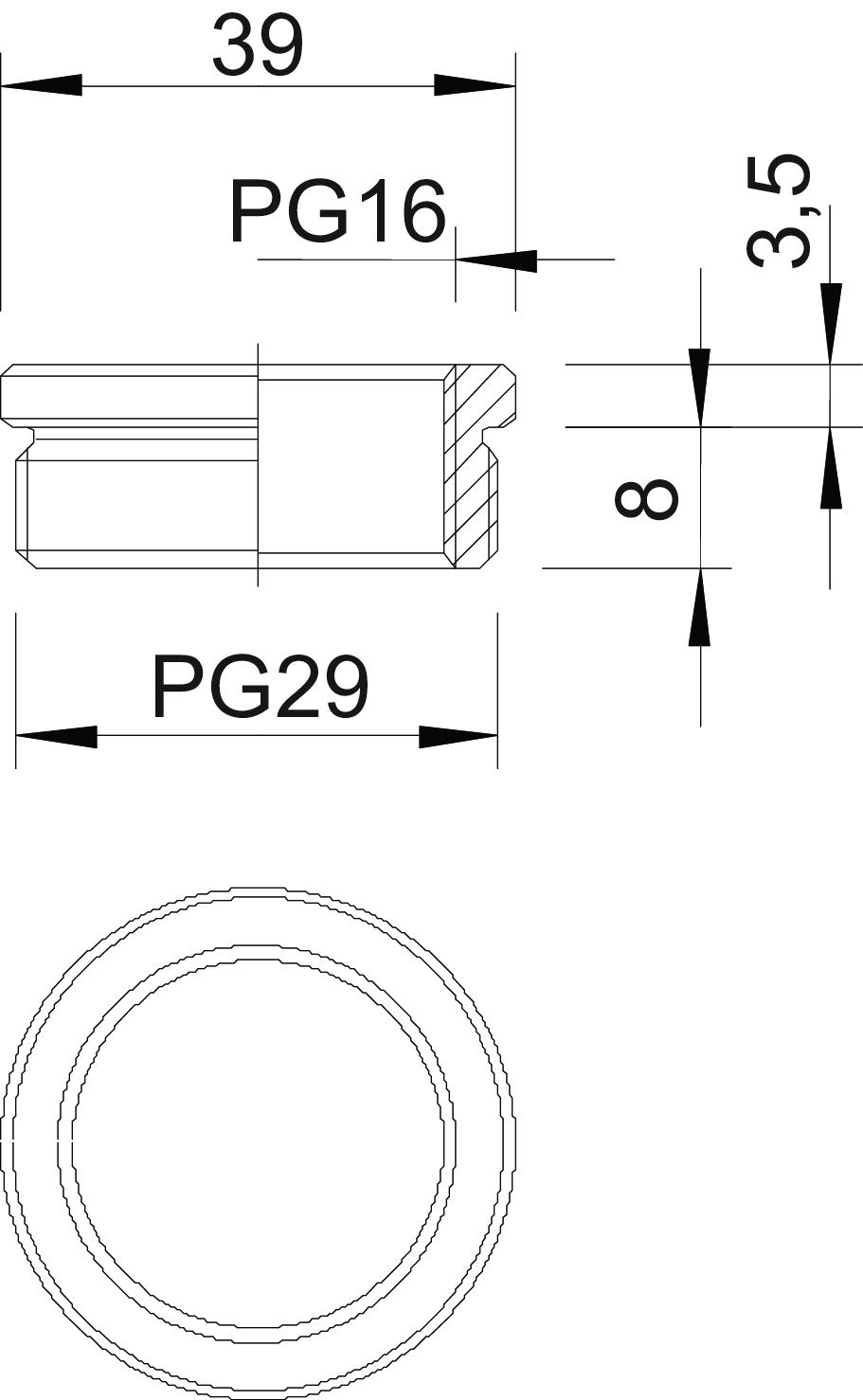 Produkta aprakstsDiametru samazinošs elements (daļa H) atb. DIN 46320, ar PG vītni atb. DIN 40430, pārejai no atveres ar PG vītni uz mazāka diametra kabeļu skrūvsavienojumu.