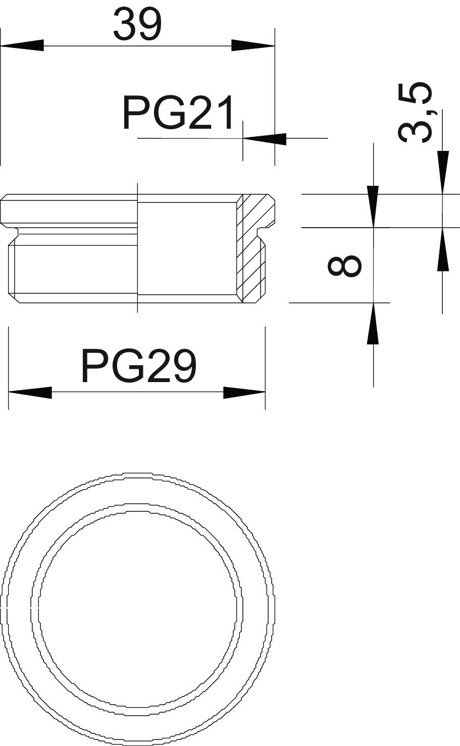Produkta aprakstsDiametru samazinošs elements (daļa H) atb. DIN 46320, ar PG vītni atb. DIN 40430, pārejai no atveres ar PG vītni uz mazāka diametra kabeļu skrūvsavienojumu.