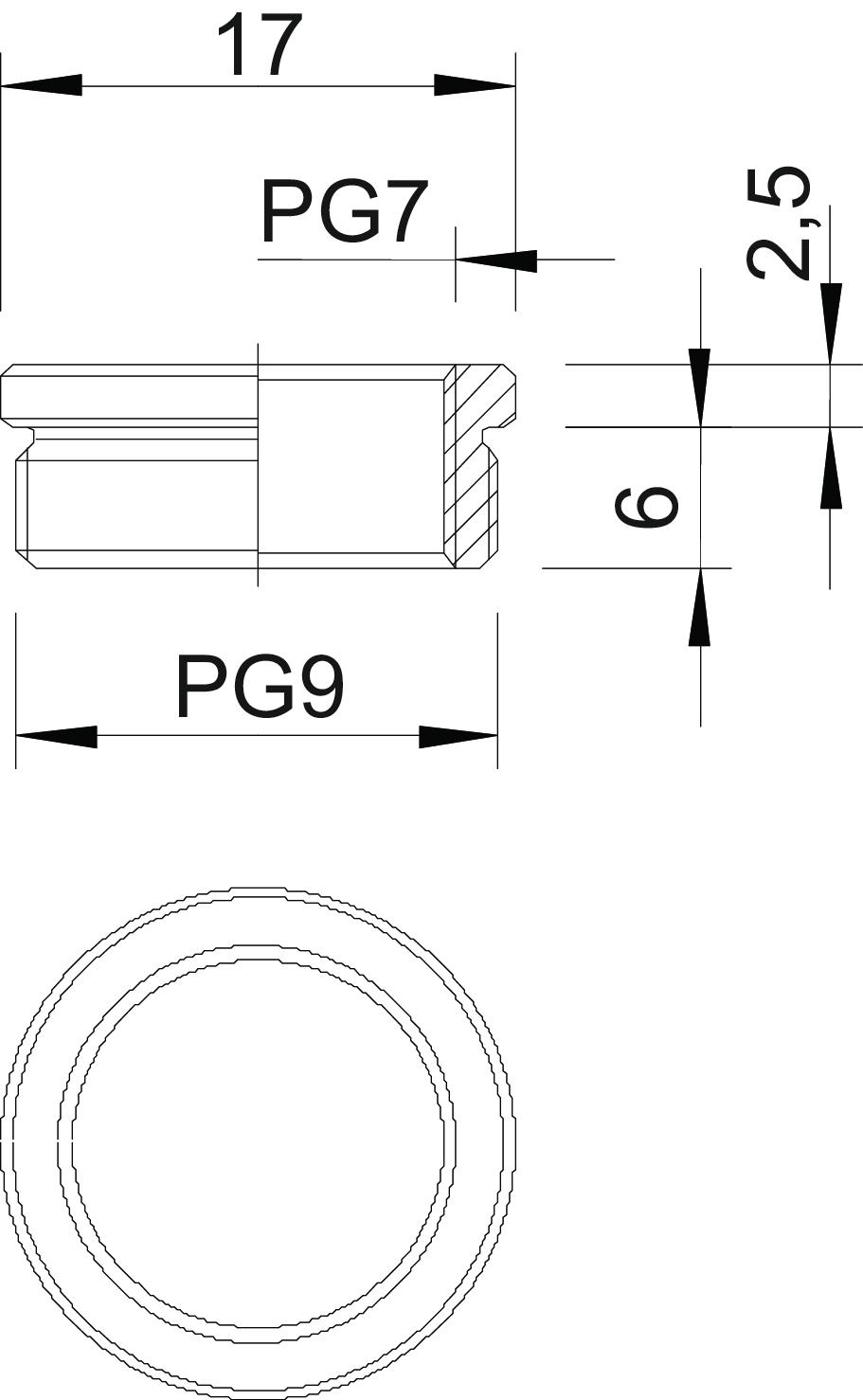 Produkta aprakstsDiametru samazinošs elements (daļa H) atb. DIN 46320, ar PG vītni atb. DIN 40430, pārejai no atveres ar PG vītni uz mazāka diametra kabeļu skrūvsavienojumu.