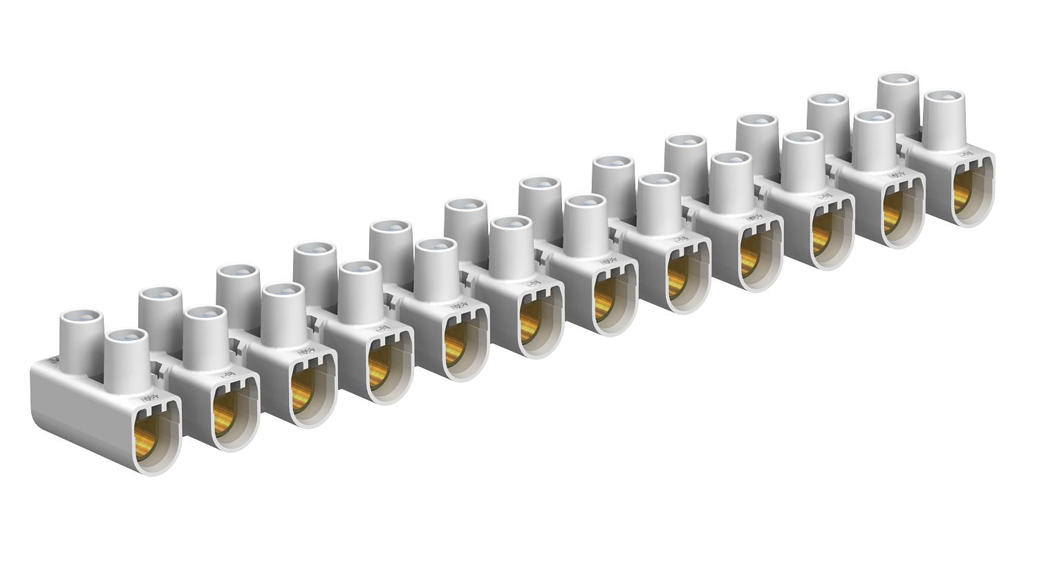 Tērauda spailes, galvaniski cinkotas tērauda skrūves, 12 polu, atsevišķās spailēs sadalāmas līstes "twist'n'pull".