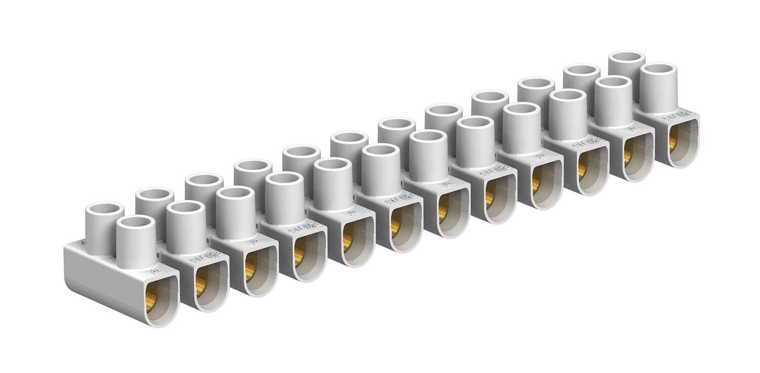 Tērauda spailes, galvaniski cinkotas tērauda skrūves, 12 polu, atsevišķās spailēs sadalāmas līstes "twist'n'pull".