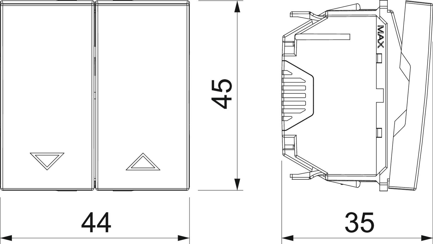 Produkta aprakstsRullo žalūziju taustiņslēdzis ar elektrisku bloķēšanu, 1 pola, 10 A, 250 V~, ar kontaktspailēm.