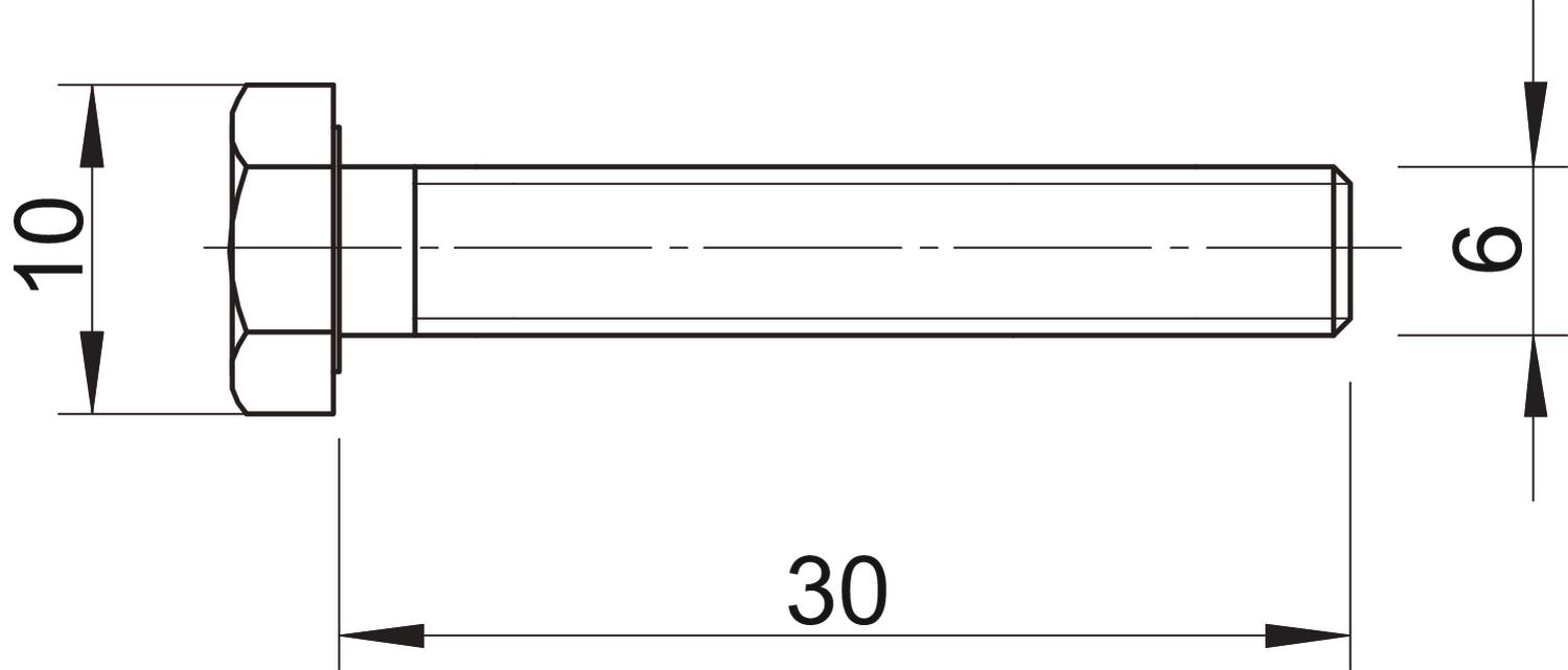 Produkta aprakstsSešstūrgalvas skrūve, atb. DIN 933, ar metrisko vītni. Izturības klase vismaz 8.8.