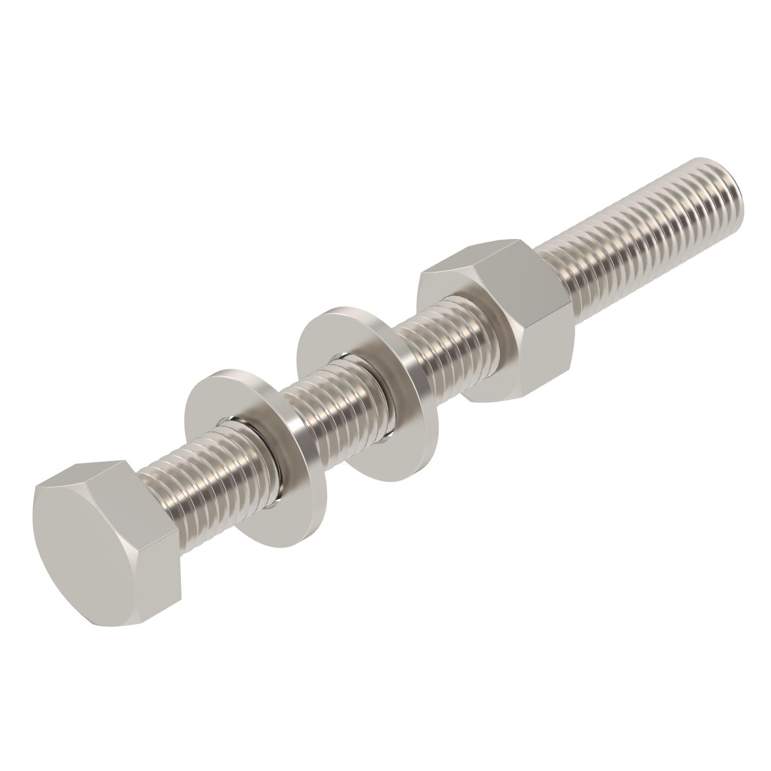 Produkta aprakstsSešstūra skrūve universālai konstrukcijas daļu nostiprināšanai. Iekļauti sešstūru uzgriežņi un 2 paplāksnes.
