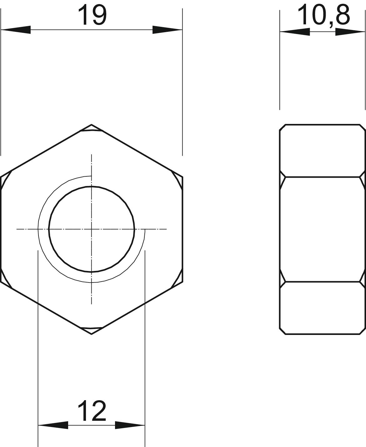 Produkta aprakstsSešstūra uzgrieznis atb. DIN 934, ar metrisku vītni.