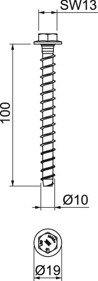 Atslēgas platums 13 Dībeļa garums 100 mm Dībeļu/naglu/skrūvju pielietojums Spirāles dībelis ETA zemestrīču novērtējums C1 Fire resistance class EN 13501-1 R30, R60, R90, R120 Galvas diametrs 19 mm Galvas forma sešstūra (heksagonāls) Garums 100 mm Iespīlēšanas biezums 50 mm Izmēri 10 x 100 Izmērs 10x100mm Izmērs L 100 mm Krāsa cinks Materiāls Tērauds Rūdīts jā Skrūvēšanas sistēma sešstūra (heksagonāls) Urbtā cauruma diametrs min. 8 mm Urbtā cauruma dziļums 60 mm Virsma galvaniski cinkota Vītne 10 Vītnes diametrs ST 10 - Visi tipi