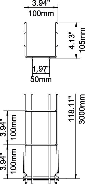 Produkta aprakstsRežģveida rene ar atbilstoši veidotu savienotāju un malas augstumu 105 mm.