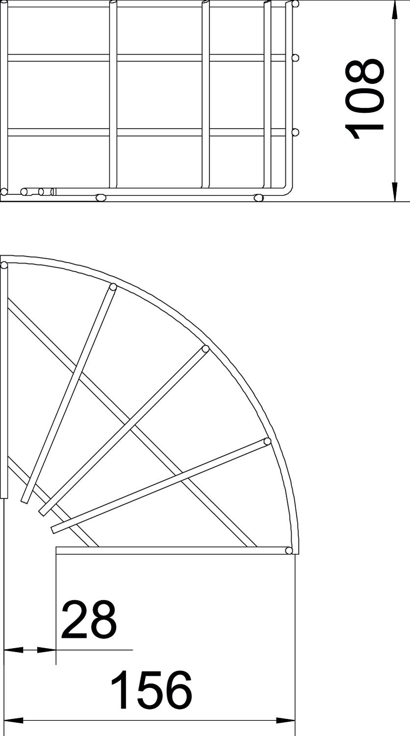Produkta aprakstsHorizontāls 90° līkums sietveida renēm ar malas augstumu 105 mm.