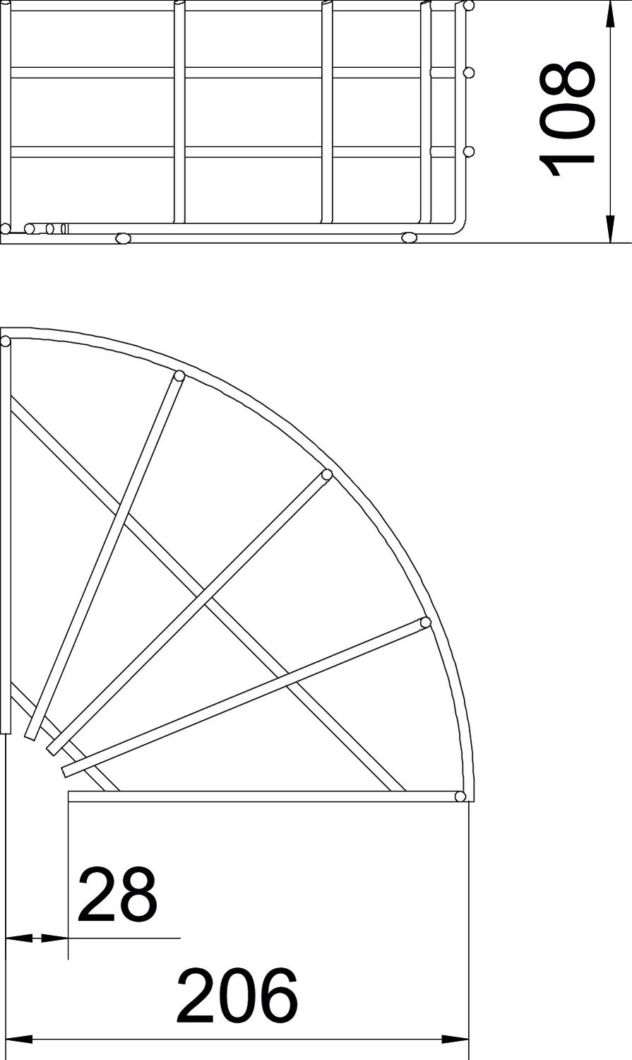 Produkta aprakstsHorizontāls 90° līkums sietveida renēm ar malas augstumu 105 mm.
