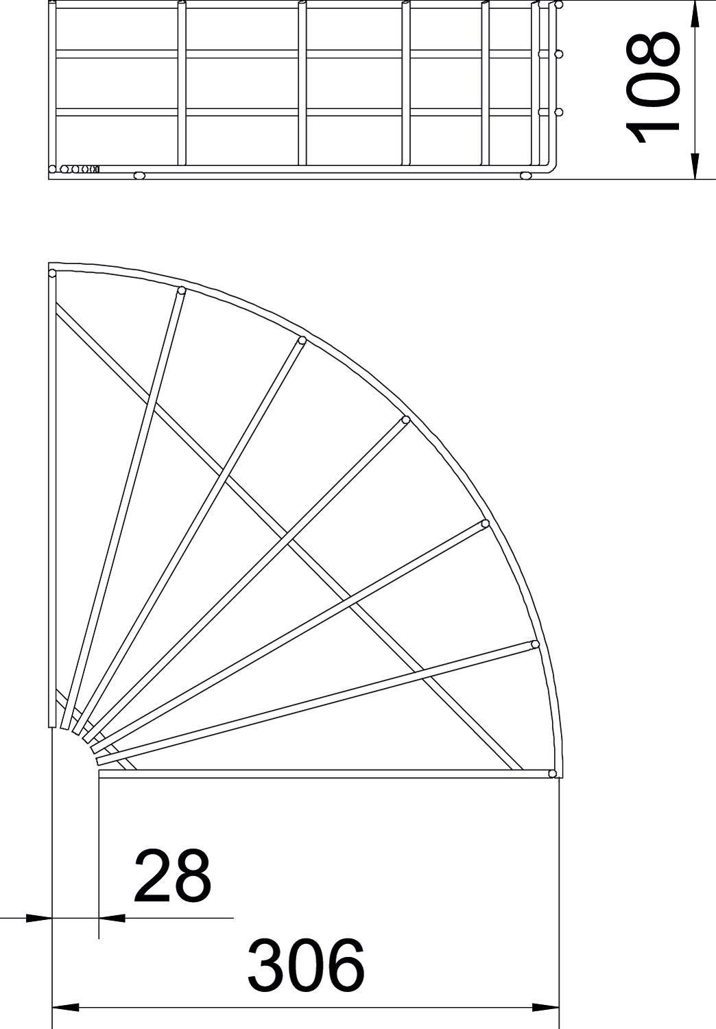 Produkta aprakstsHorizontāls 90° līkums sietveida renēm ar malas augstumu 105 mm.
