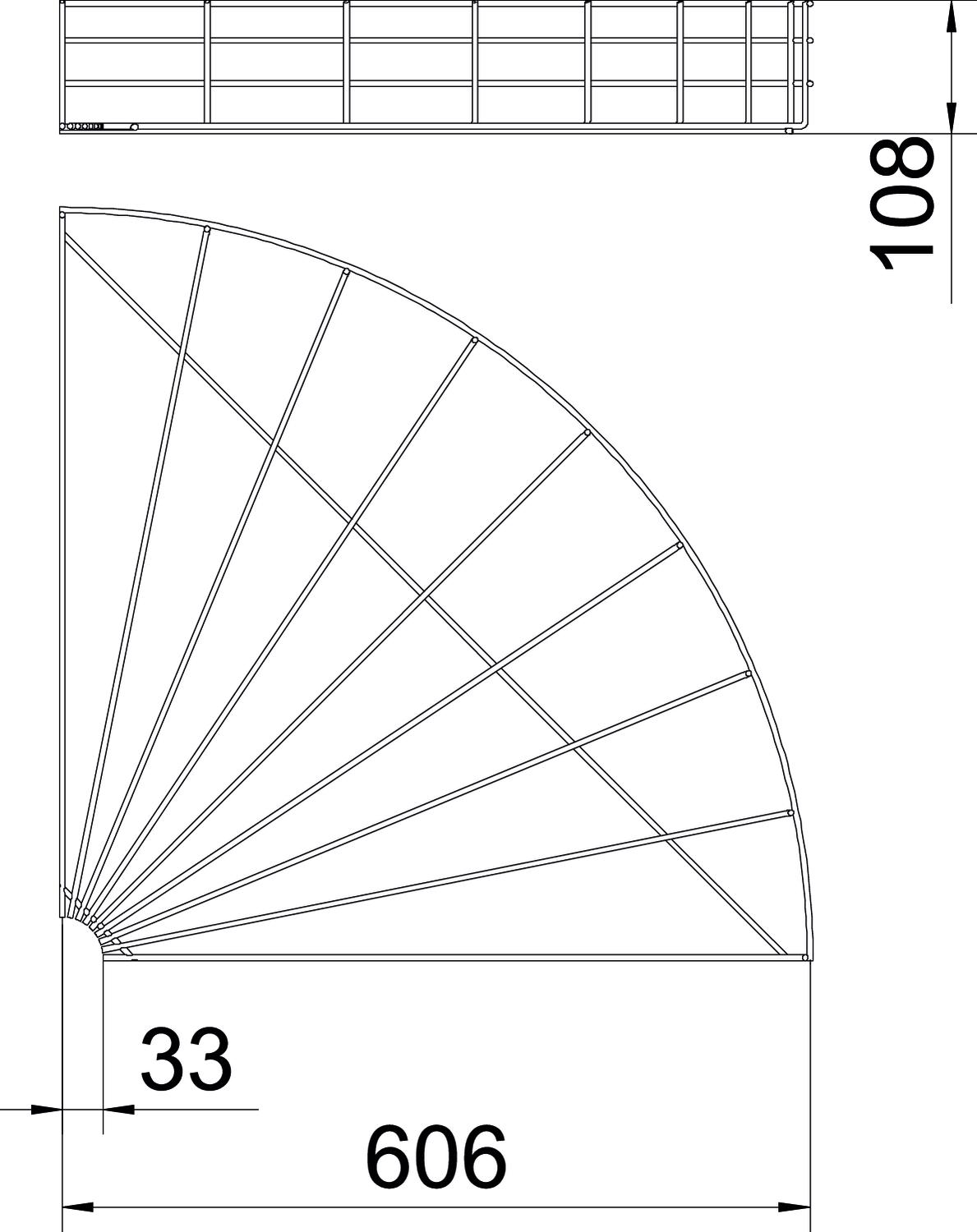 Produkta aprakstsHorizontāls 90° līkums sietveida renēm ar malas augstumu 105 mm.