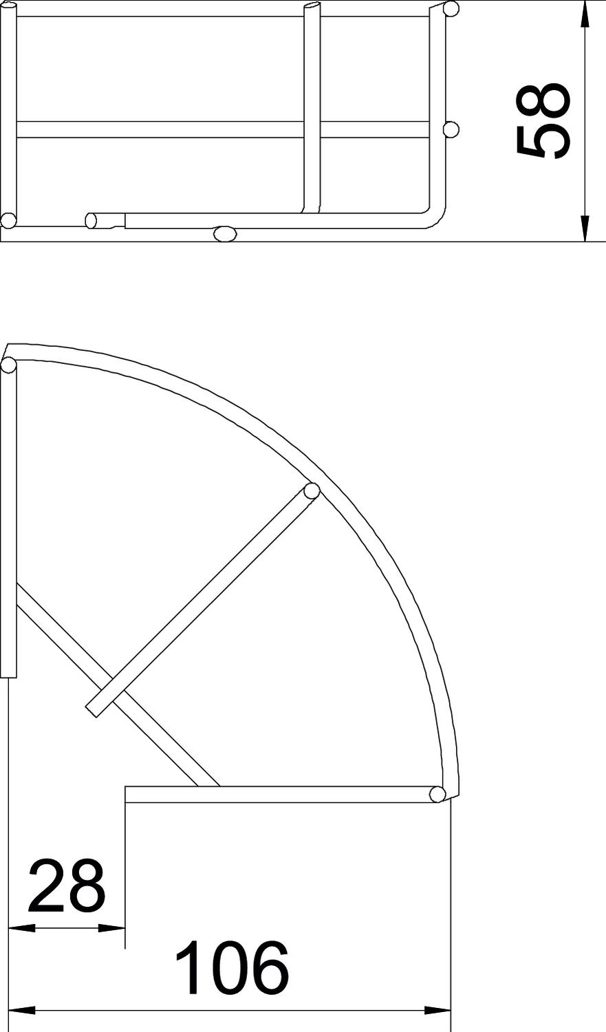 Produkta aprakstsHorizontāls 90° līkums sietveida renēm ar malas augstumu 55 mm.